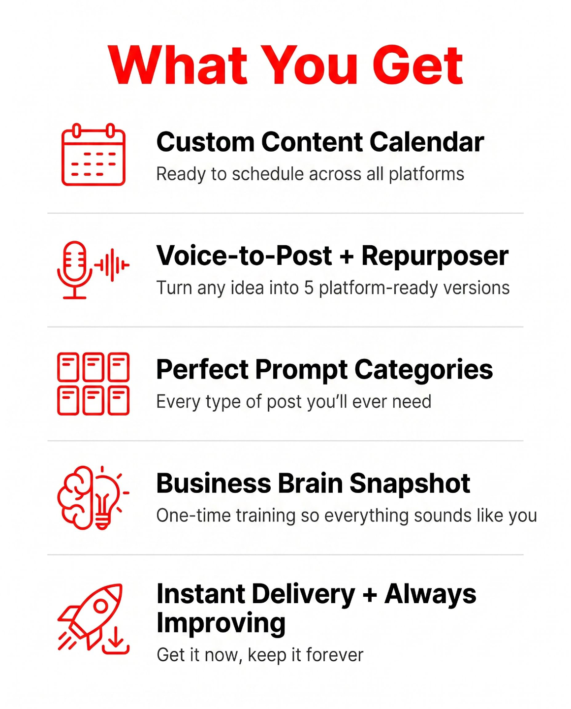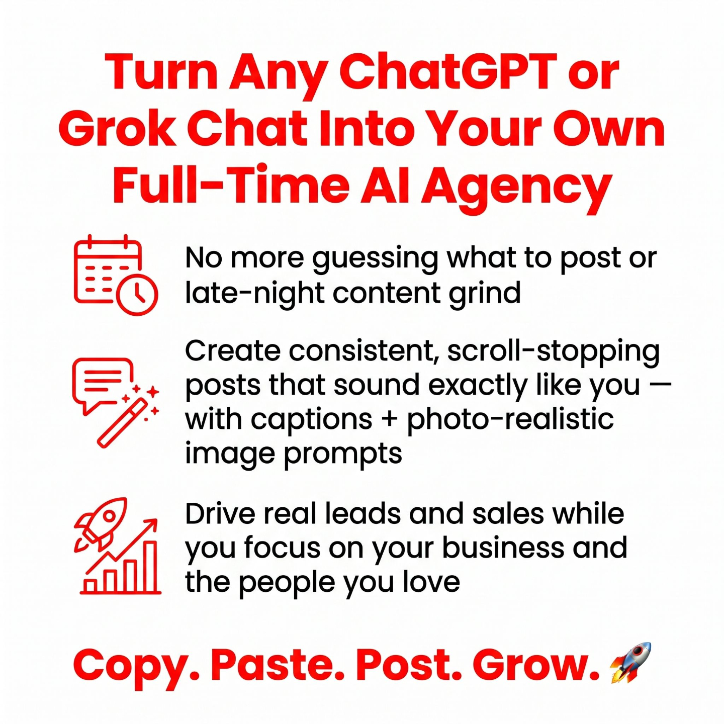 Try Social Media Content Rocket. If you don’t feel like you’re finally getting consistent, scroll-stopping posts that sound exactly like you — and you’re actually reclaiming evenings and weekends with your family — just email me and